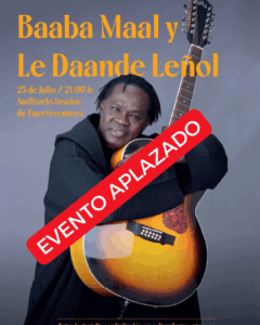 Lamentamos informar que el concierto de Baaba Maal y Le Daande Leñol previsto para el próximo viernes 25 de julio en el Auditorio Insular de Fuerteventura queda cancelado por motivos ajenos a la organización.