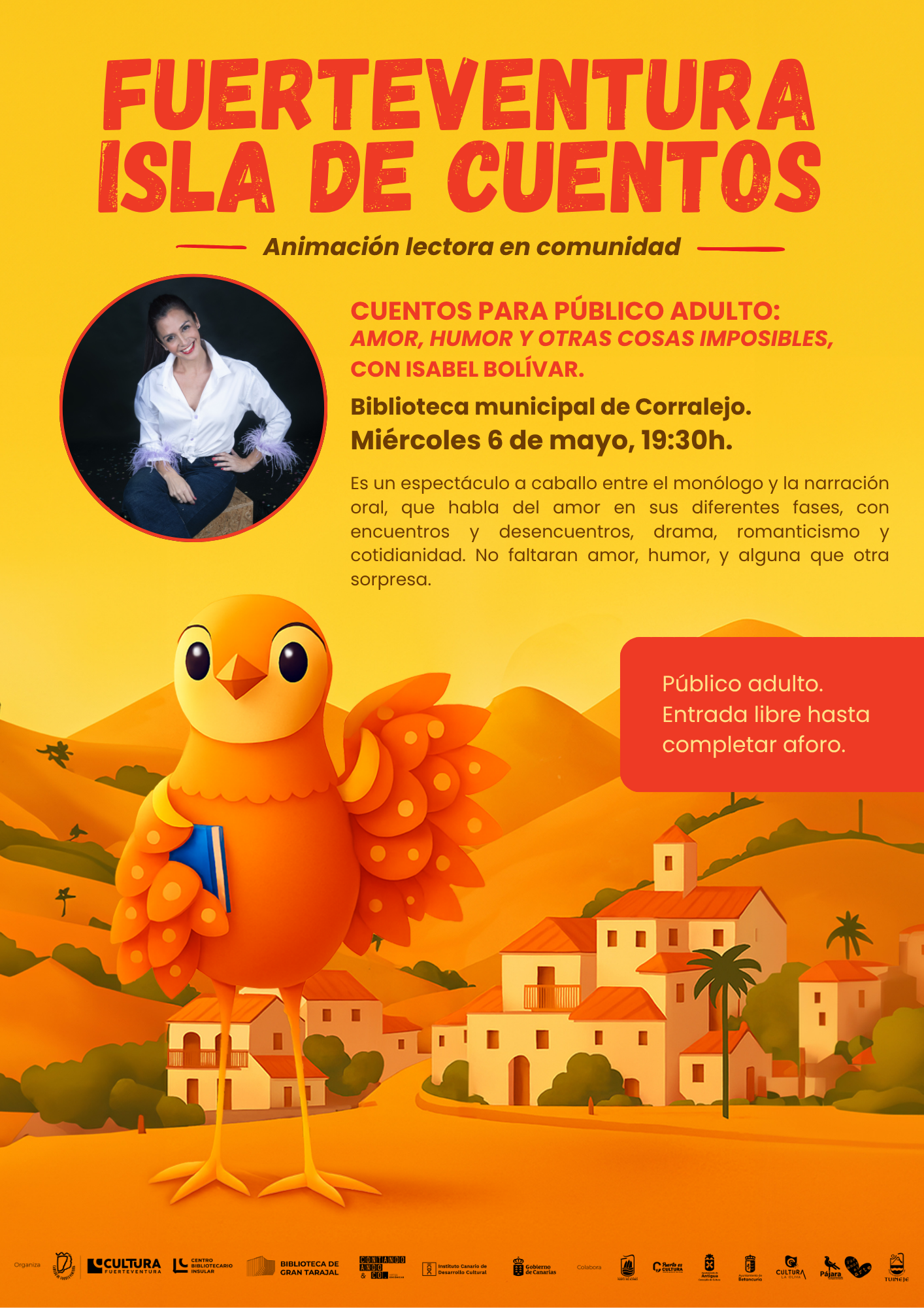 FUERTEVENTURA ISLA DE CUENTOS. SESIÓN DE CUENTOS PARA PÚBLICO ADULTO: “AMOR, HUMOR Y OTRAS COSAS IMPOSIBLES” CON ISABEL BOLÍVAR