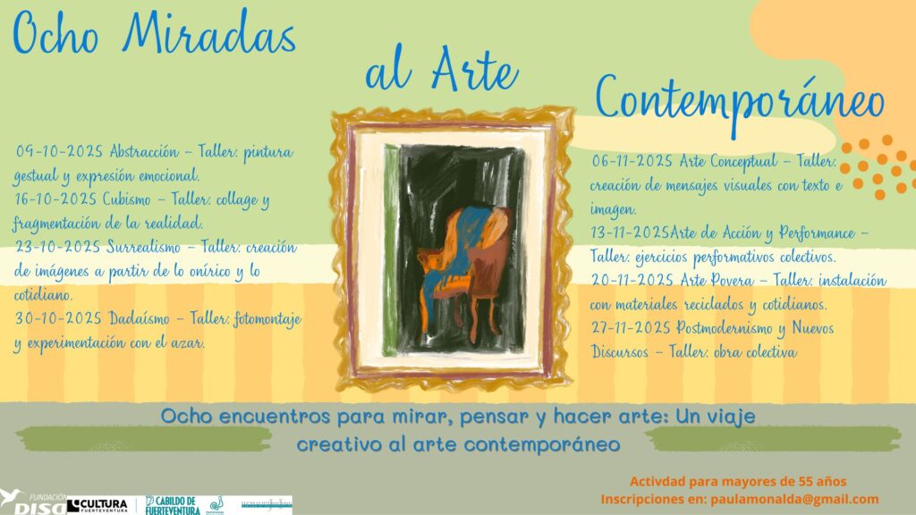 El arte contemporáneo ofrece una vía para acercar a las personas mayores a nuevas formas de pensamiento, estimular su creatividad y favorecer la participación cultural activa. Muchas veces, este sector de la población se siente alejado de los discursos actuales del arte, por lo que resulta fundamental ofrecer herramientas accesibles, didácticas y participativas que les permitan comprender y disfrutar de los principales movimientos artísticos del último siglo.
