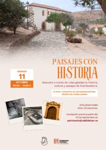 Las rutas patrimoniales “Paisajes con historia” tienen como objetivo dar a conocer el patrimonio de Fuerteventura a través de rutas guiadas por diferentes lugares del territorio majorero y así poner en valor y preservar el patrimonio insular. De este modo, la población podrá acercarse a distintos momentos históricos de la isla y las manifestaciones culturales que aún se conservan de ellos.