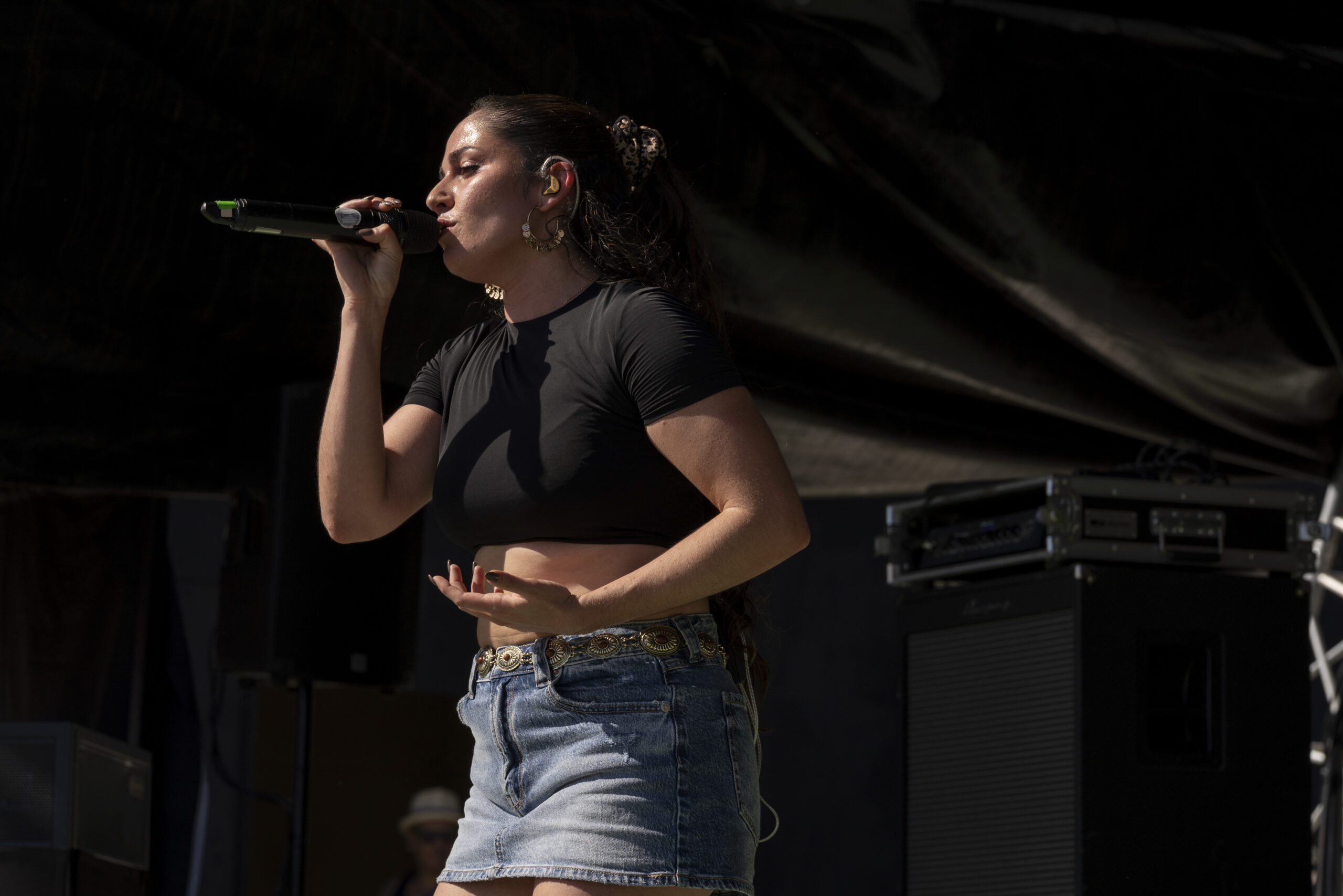 Aldara, artista canaria de voz potente y estilo camaleónico, combina géneros como el pop, el latin, el urbano y el comercial.
